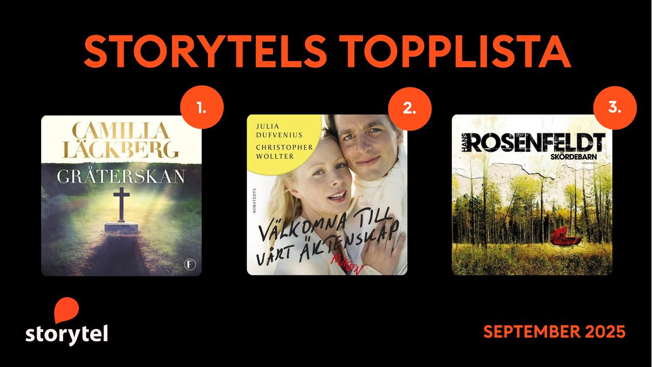 Camilla Läckbergs Gråterskan, den tolfte delen i Fjällbackaserien, är september månads mest lyssnade ljudbok på Storytel Sverige. Tvåa på listan är höstens stora snackis, makarna Julia Dufvenius och Christopher Wollters biografi Välkomna till vårt äktenskap. På tredjeplatsen återfinns Hans Rosenfeldts Skördebarn, uppföljaren till Vargasommar.
